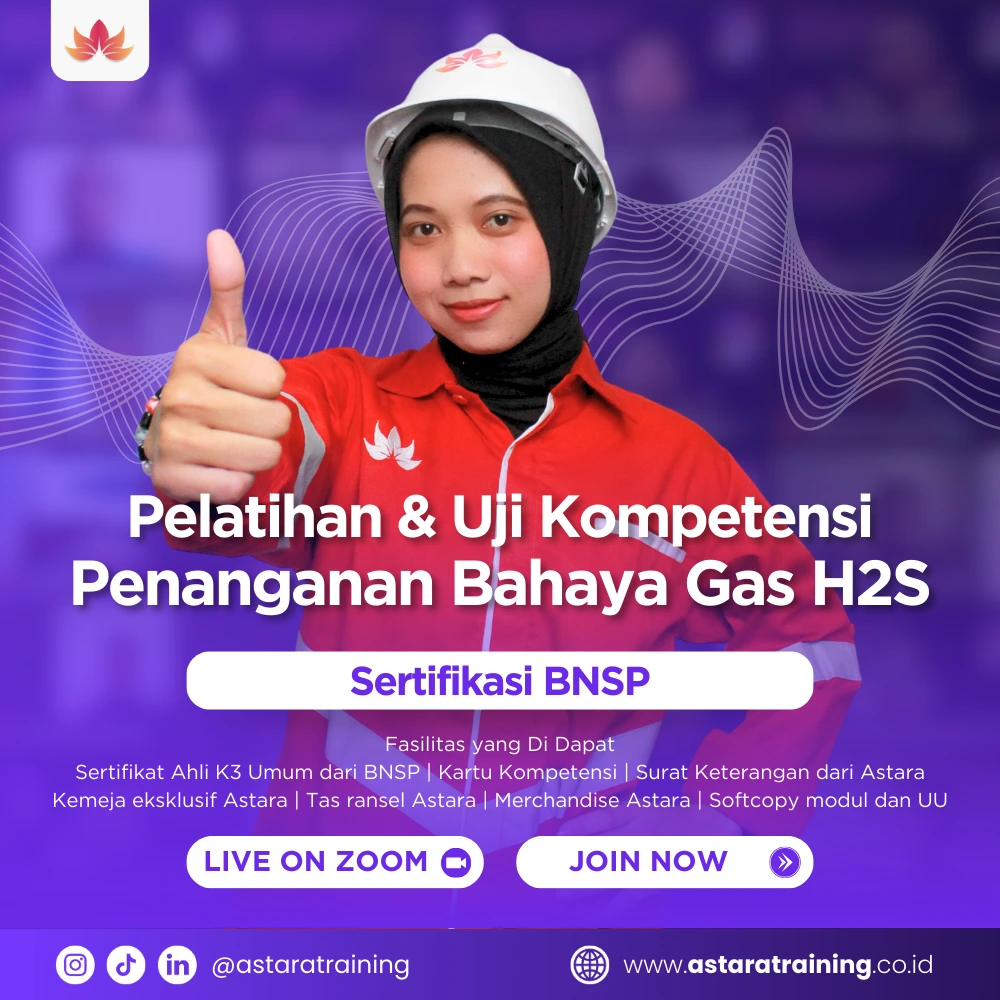 Pelatihan Penanganan Bahaya Gas H2S BNSP adalah program pelatihan yang dirancang untuk membekali peserta dengan pengetahuan dan keterampilan dalam mengenali, mencegah, dan menangani bahaya gas hidrogen sulfida (H2S) di lingkungan kerja. Gas H2S merupakan zat beracun dan mudah terbakar yang banyak ditemukan di industri minyak, gas, dan petrokimia, sehingga memerlukan penanganan khusus untuk mencegah kecelakaan dan keracunan. Dalam pelatihan ini, peserta mempelajari sifat gas H2S, risiko yang ditimbulkan, prosedur keselamatan kerja, penggunaan alat pelindung diri (APD), serta tindakan darurat dan evakuasi jika terjadi paparan.
